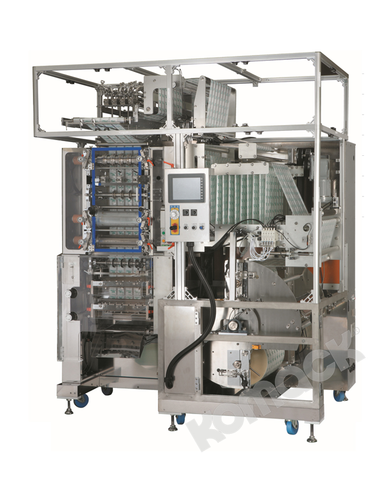 本機為多列式液體·粘體自動充填包裝機,其應用廣泛,操作簡單,保養簡易。本機實現了多列4邊封充填包裝,建議您在需要多列化且制袋寬×列數+雙邊切割寬合計500mm以內情況下時使用。